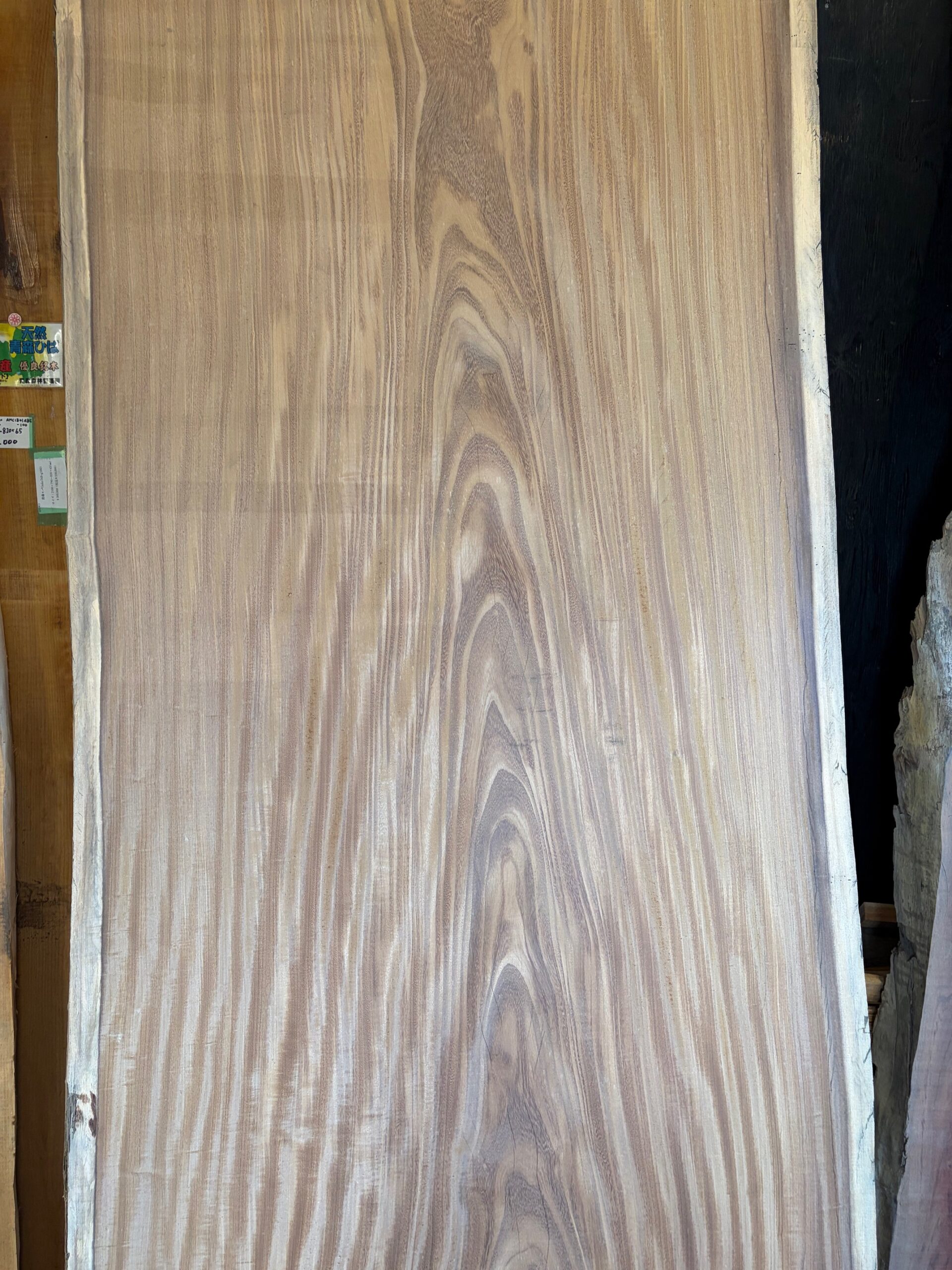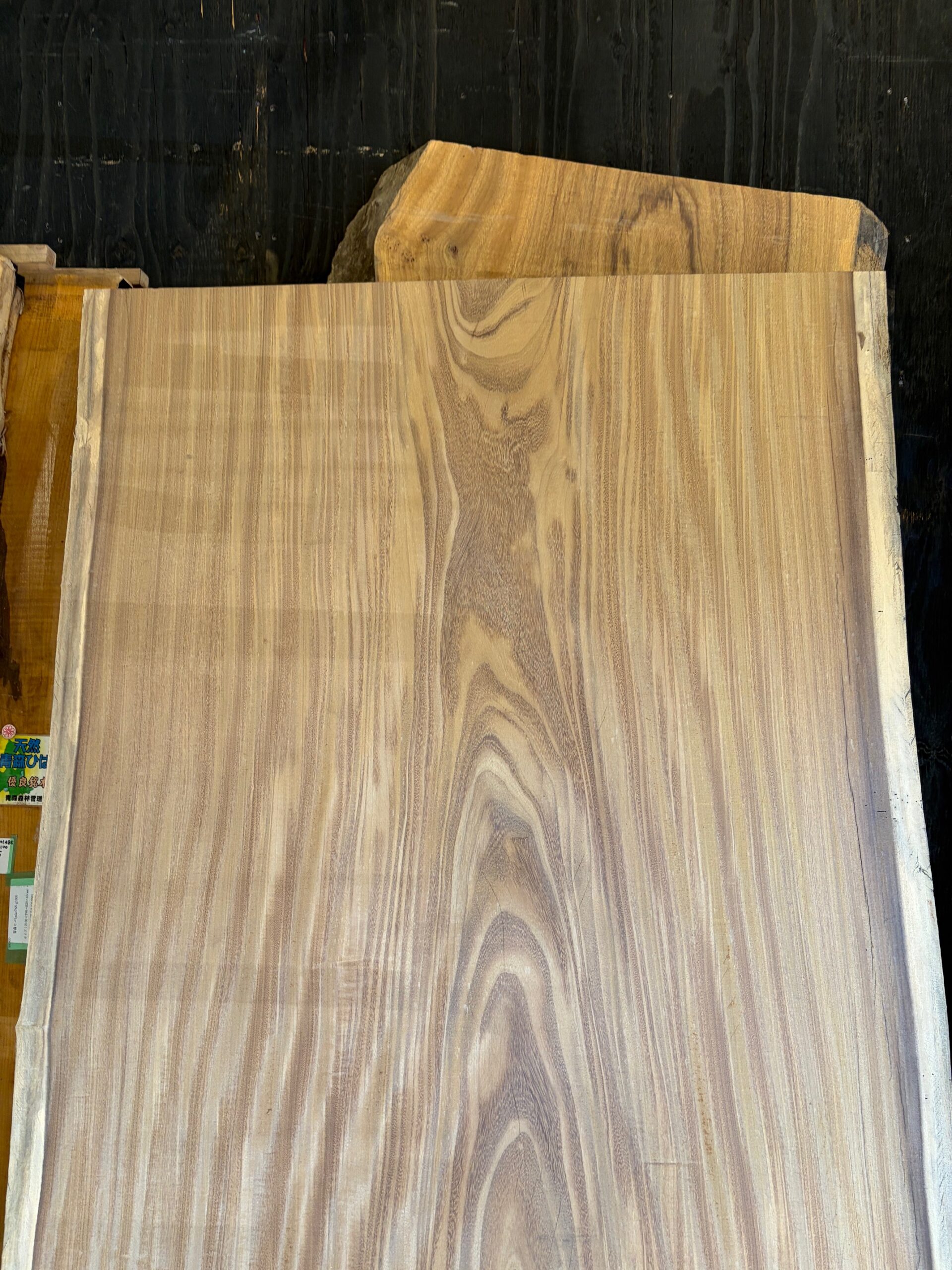 アサメラの一枚板です。上品さが漂う美しい木目の一枚板です。クリア塗装で仕上げることで、より美しい色合いの表情があらわれます。一枚板テーブルにおすすめの逸品です。