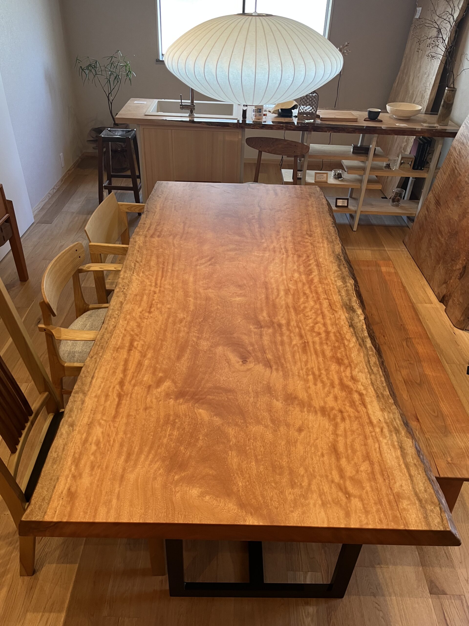 バストゥーンウォールナット一枚板天板 サイズ:長さ2270×幅735~1030×厚み55(㎜)¥913,000(税込)